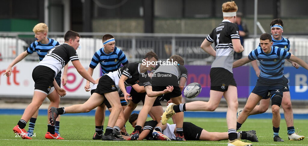 14 October 2021; Daniel Connolly of Newbridge College during the Bank of Ireland Leinster Schools Junior Cup semi-final match between St Vincent’s Castleknock College and Newbridge College at Energia Park in Dublin. Photo by Matt Browne/Sportsfile