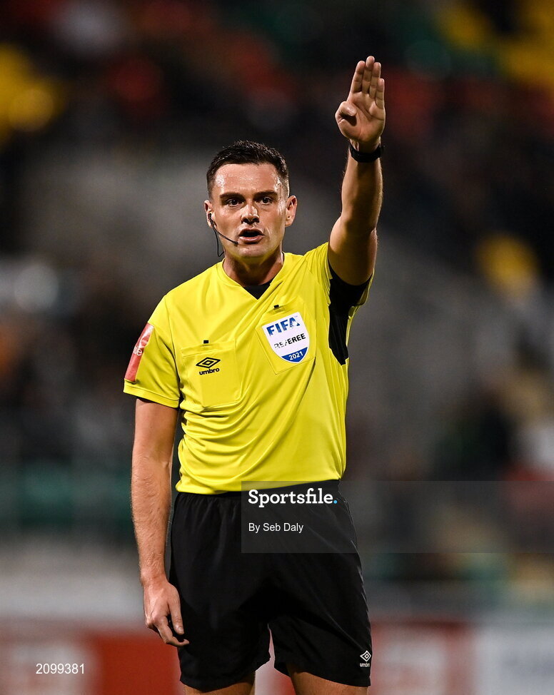15 October 2021; Referee Robert Hennessy during the SSE Airtricity League Premier Division match between Shamrock Rovers and Sligo Rovers at Tallaght Stadium in Dublin. Photo by Seb Daly/Sportsfile