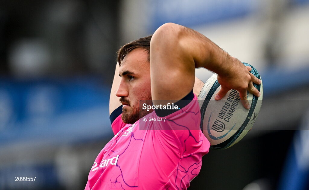 16 October 2021; Rónan Kelleher of Leinster warms-up before his side's United Rugby Championship match against Scarlets at the RDS Arena in Dublin. Photo by Seb Daly/Sportsfile