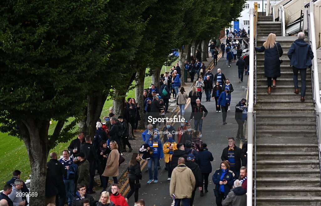 16 October 2021; Leinster supporters arrive before the United Rugby Championship match between Leinster and Scarlets at the RDS Arena in Dublin. Photo by Ramsey Cardy/Sportsfile