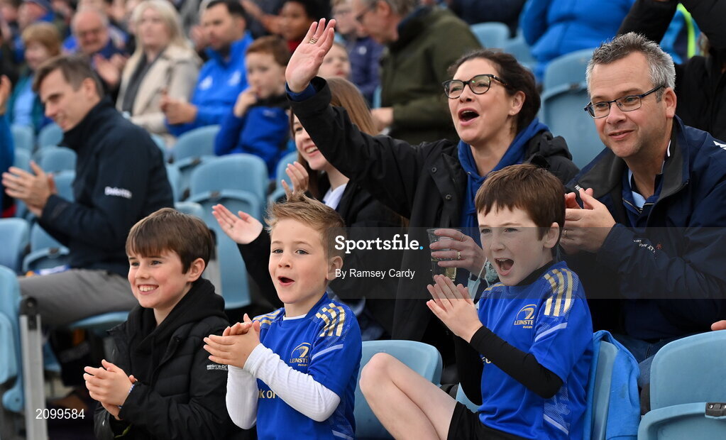 16 October 2021; Leinster supporters during the United Rugby Championship match between Leinster and Scarlets at the RDS Arena in Dublin. Photo by Ramsey Cardy/Sportsfile