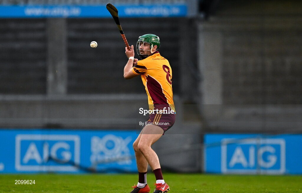 16 October 2021; Cian Derwin of Craobh Chiaráin during the Go Ahead Dublin County Senior Club Hurling Championship quarter-final match between Craobh Chiaráin and Lucan Sarsfields at Parnell Park in Dublin. Photo by Eóin Noonan/Sportsfile
