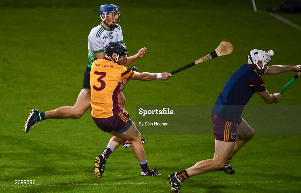 16 October 2021; Paul Crummey of Lucan Sarsfields shoots to score his side's first goal during the Go Ahead Dublin County Senior Club Hurling Championship quarter-final match between Craobh Chiaráin and Lucan Sarsfields at Parnell Park in Dublin. Photo by Eóin Noonan/Sportsfile