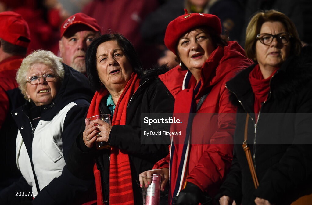 16 October 2021; Munster supporters watch on during the United Rugby Championship match between Munster and Connacht at Thomond Park in Limerick. Photo by David Fitzgerald/Sportsfile