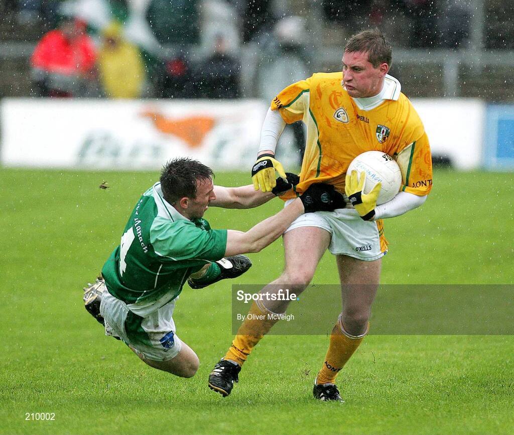 21 May 2006; Shane Goan, Fermanagh, in action against Kevin Mc Gourty, Antrim. Bank of Ireland Ulster Senior Football Championship, Round 1, Fermanagh v Antrim, Brewster Park, Enniskillen, Co. Fermanagh. Picture credit; Oliver McVeigh / SPORTSFILE