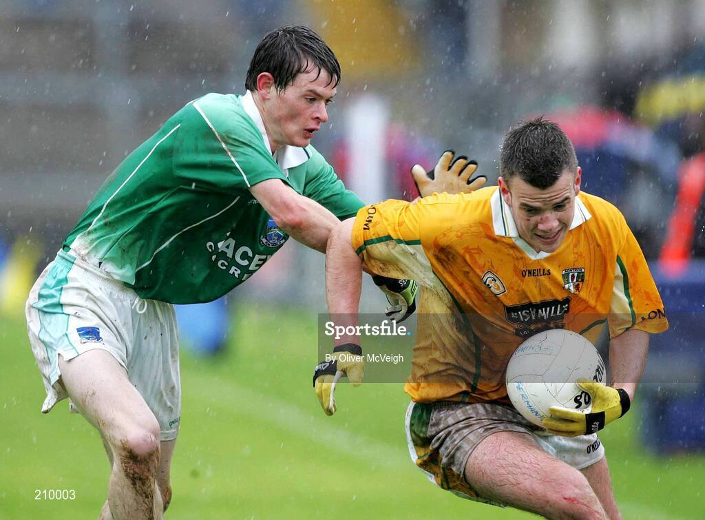 21 May 2006; Peter Sherry, Fermanagh, in action against Andrew McClean, Antrim. Bank of Ireland Ulster Senior Football Championship, Round 1, Fermanagh v Antrim, Brewster Park, Enniskillen, Co. Fermanagh. Picture credit; Oliver McVeigh / SPORTSFILE