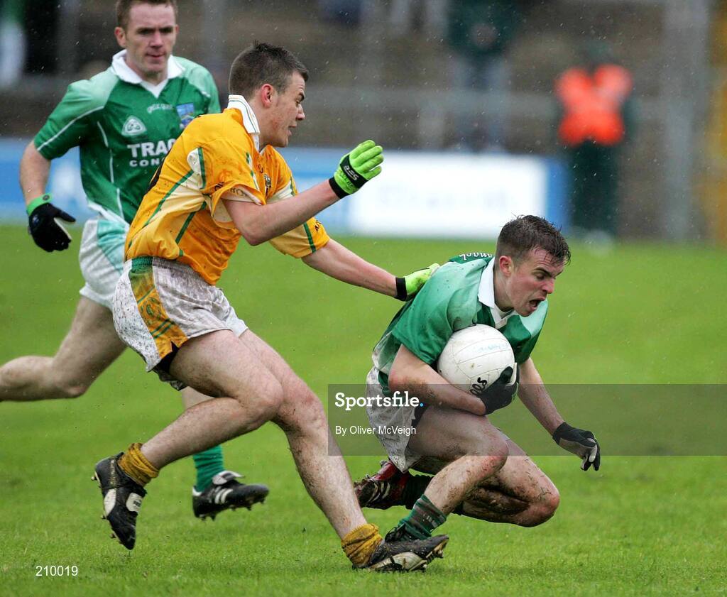21 May 2006; Mark Little, Fermanagh, in action against Sean McVeigh, Antrim. Bank of Ireland Ulster Senior Football Championship, Round 1, Fermanagh v Antrim, Brewster Park, Enniskillen, Co. Fermanagh. Picture credit; Oliver McVeigh / SPORTSFILE