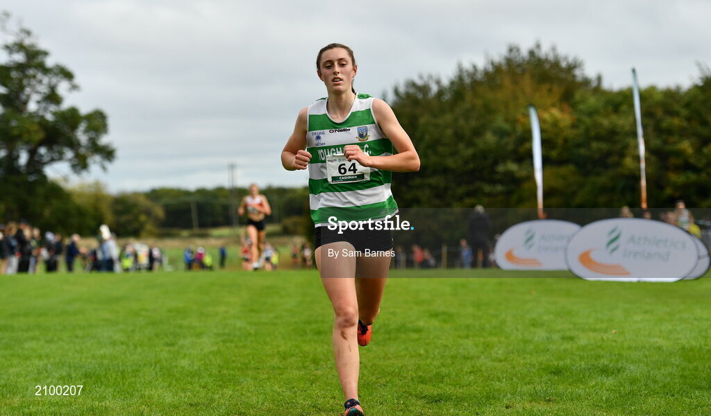 17 October 2021; Avril Cashman of Youghal AC, Cork, competing in the Junior Women's 4500m during the Autumn Open International Cross Country at the Sport Ireland Campus in Dublin. Photo by Sam Barnes/Sportsfile