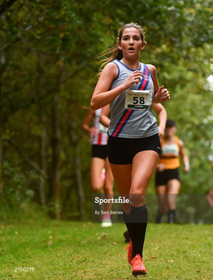 17 October 2021; Eimear Maher of Dundrum South Dublin AC, competing in the Junior Women's 4500m during the Autumn Open International Cross Country at the Sport Ireland Campus in Dublin. Photo by Sam Barnes/Sportsfile