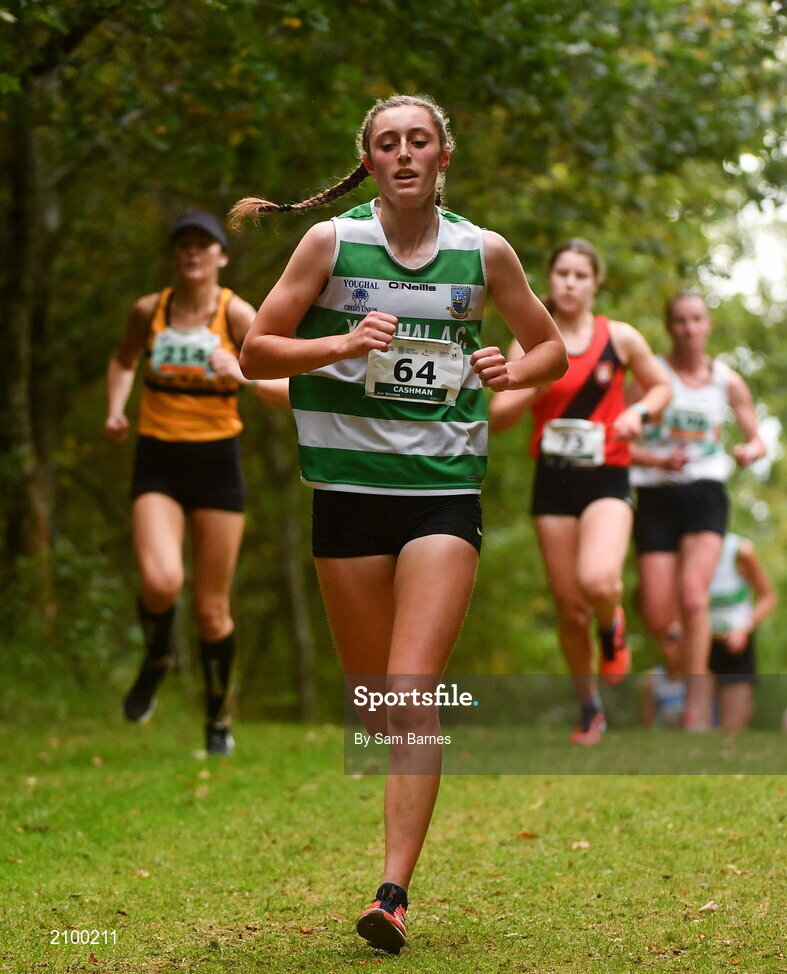 17 October 2021; Avril Cashman of Youghal AC, Cork, competing in the Junior Women's 4500m during the Autumn Open International Cross Country at the Sport Ireland Campus in Dublin. Photo by Sam Barnes/Sportsfile