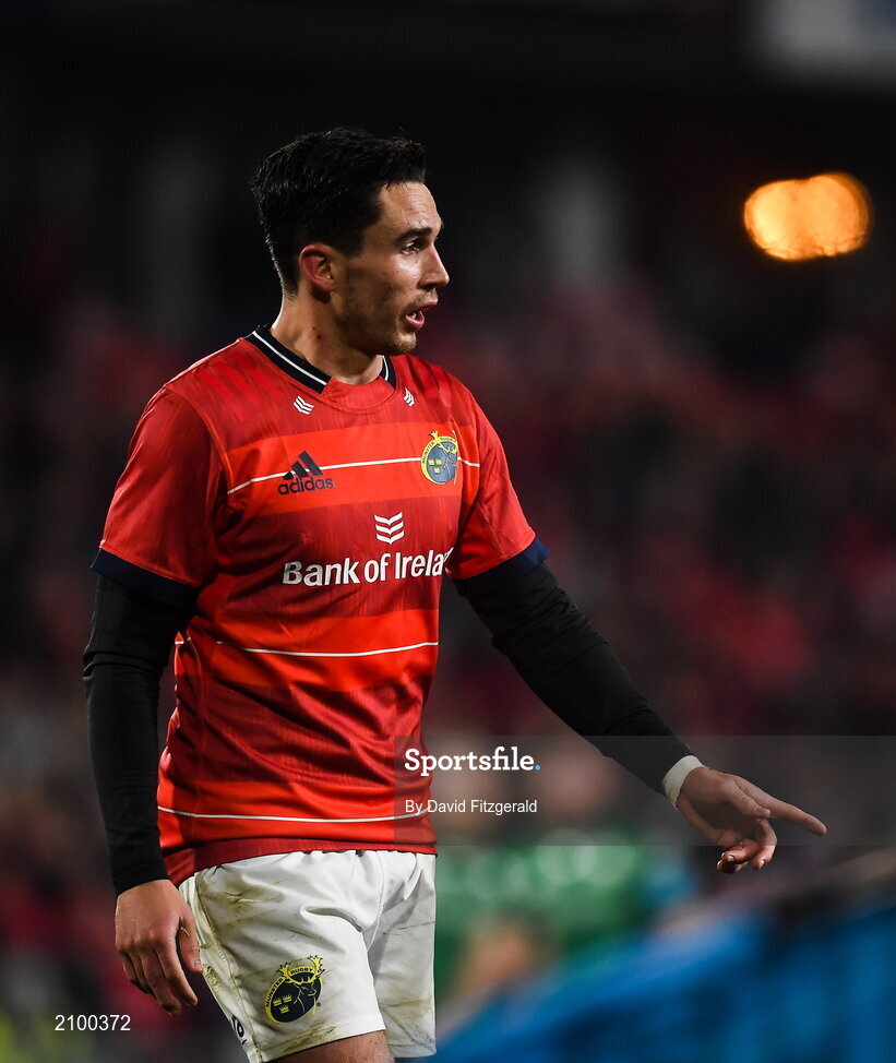 16 October 2021; Joey Carbery of Munster during the United Rugby Championship match between Munster and Connacht at Thomond Park in Limerick. Photo by David Fitzgerald/Sportsfile
