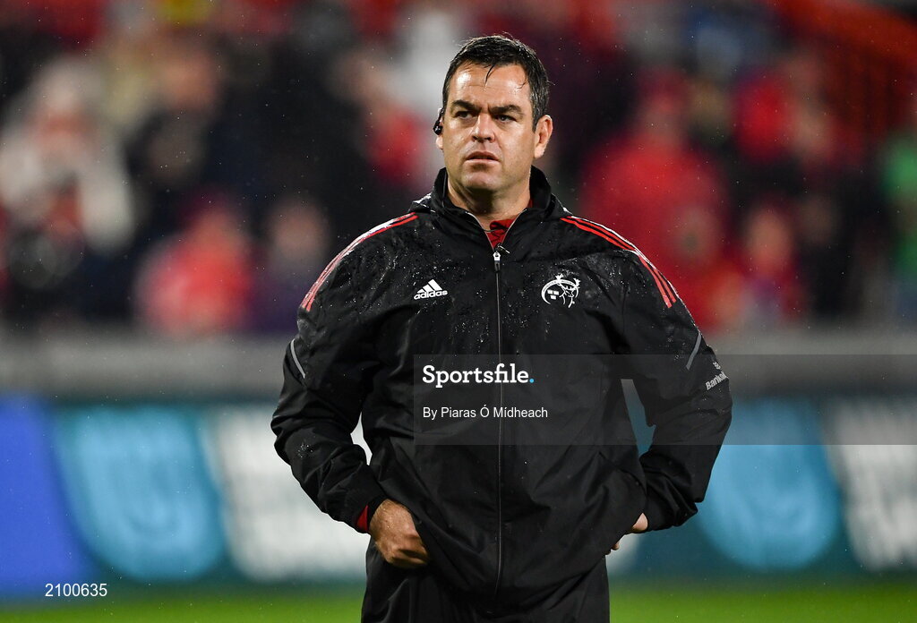 16 October 2021; Munster head coach Johann van Graan before the United Rugby Championship match between Munster and Connacht at Thomond Park in Limerick. Photo by Piaras Ó Mídheach/Sportsfile