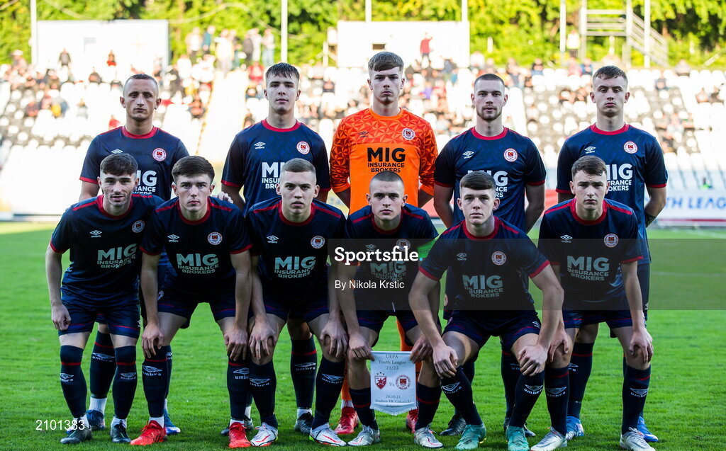 20 October 2021; The St Patrick’s Athletic team before the UEFA Youth League first round second leg match between Crvena Zvezda and St Patrick’s Athletic at Cukaricki Stadium in Belgrade, Serbia. Photo by Nikola Krstic/Sportsfile