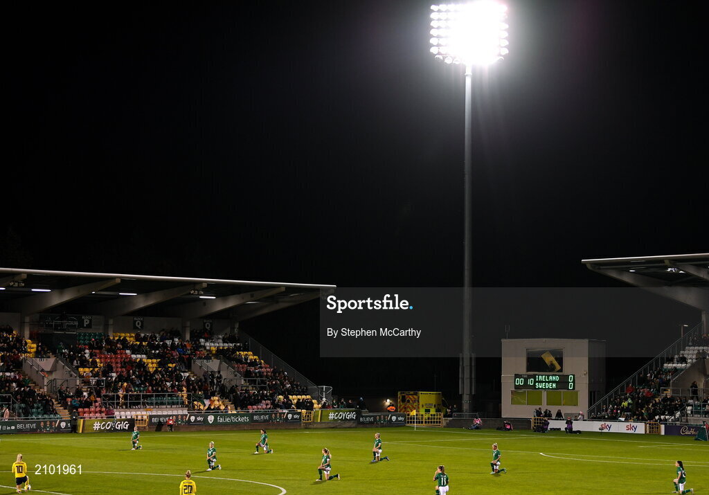 21 October 2021; Players from both sides take a knee before the FIFA Women's World Cup 2023 qualifier group A match between Republic of Ireland and Sweden at Tallaght Stadium in Dublin. Photo by Stephen McCarthy/Sportsfile