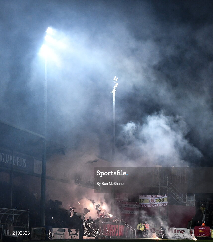 22 October 2021; St Patrick's Athletic supporters before the Extra.ie FAI Cup Semi-Final match between St Patrick's Athletic and Dundalk at Richmond Park in Dublin. Photo by Ben McShane/Sportsfile