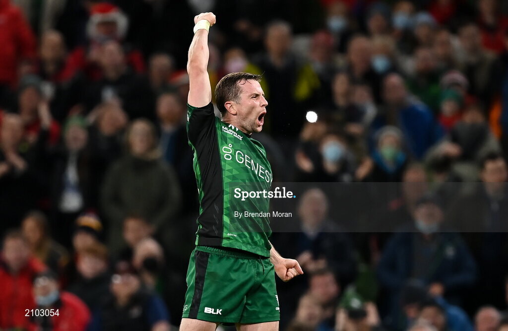 23 October 2021; Jack Carty of Connacht celebrates at the final whistle of the United Rugby Championship match between Connacht and Ulster at Aviva Stadium in Dublin. Photo by Brendan Moran/Sportsfile