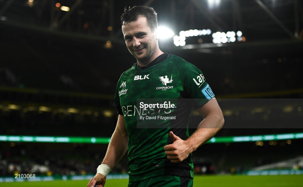23 October 2021; Jack Carty of Connacht celebrates after the United Rugby Championship match between Connacht and Ulster at Aviva Stadium in Dublin. Photo by David Fitzgerald/Sportsfile