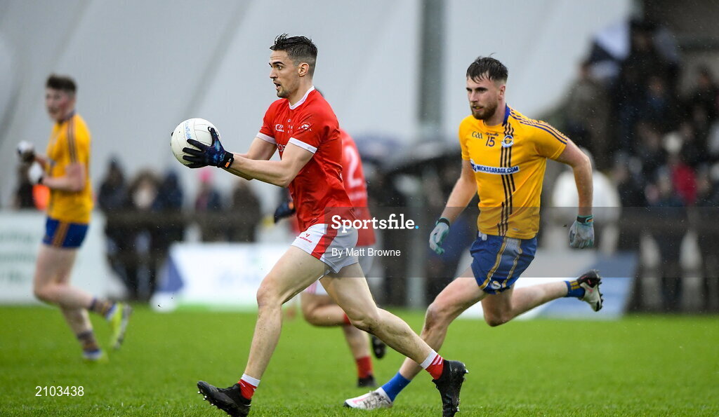 23 October 2021; Brian Walsh of Ballintubber in action against Peter Naughton of Knockmore during the Mayo County Senior Club Football Championship Quarter-Final match between Ballintubber and Knockmore at Connacht GAA Centre in Bekan, Mayo. Photo by Matt Browne/Sportsfile