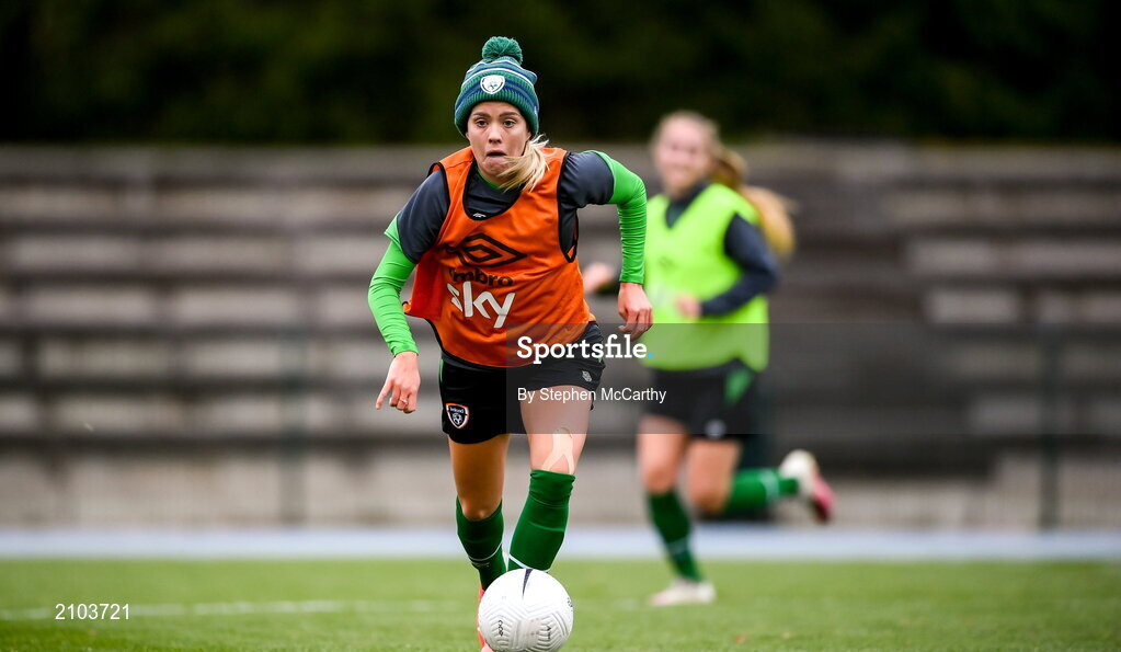 24 October 2021; Denise O'Sullivan during a Republic of Ireland Women training session at Leppavaara Stadium in Helsinki, Finland. Photo by Stephen McCarthy/Sportsfile