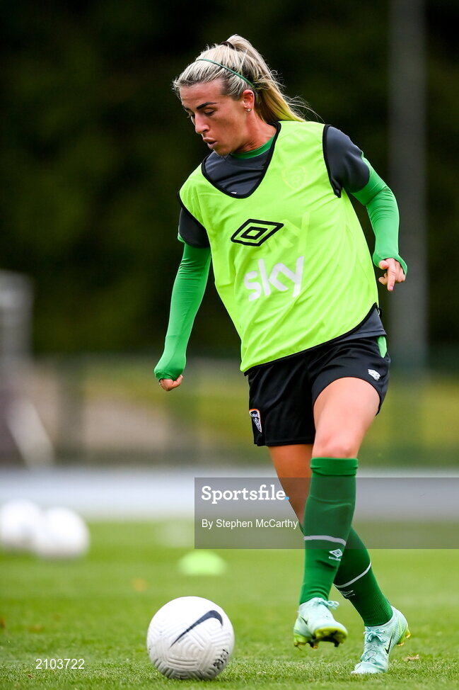 24 October 2021; Savannah McCarthy during a Republic of Ireland Women training session at Leppavaara Stadium in Helsinki, Finland. Photo by Stephen McCarthy/Sportsfile