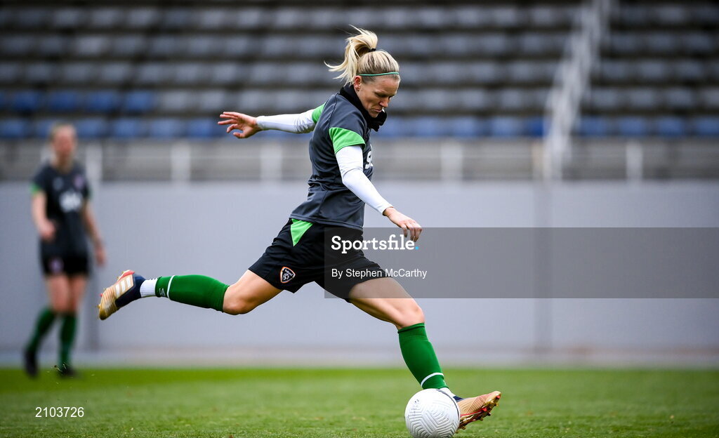 24 October 2021; Diane Caldwell during a Republic of Ireland Women training session at Leppavaara Stadium in Helsinki, Finland. Photo by Stephen McCarthy/Sportsfile