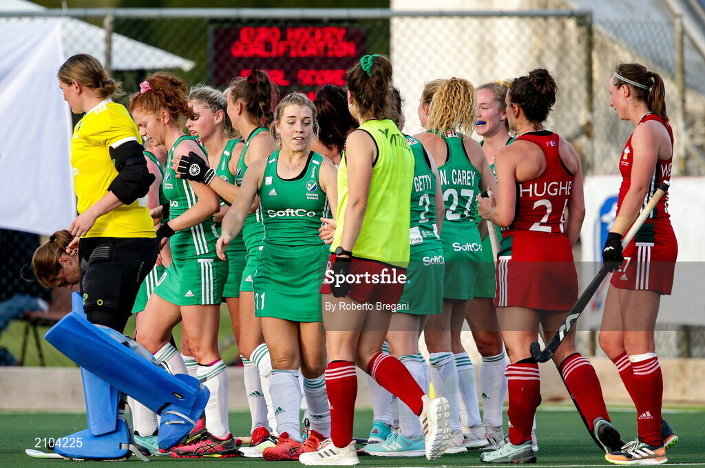 24 October 2021; Ireland players celebrate victory following the FIH Women's World Cup European Qualifier Final match between Ireland and Wales at Pisa in Italy. Photo by Roberto Bregani/Sportsfile