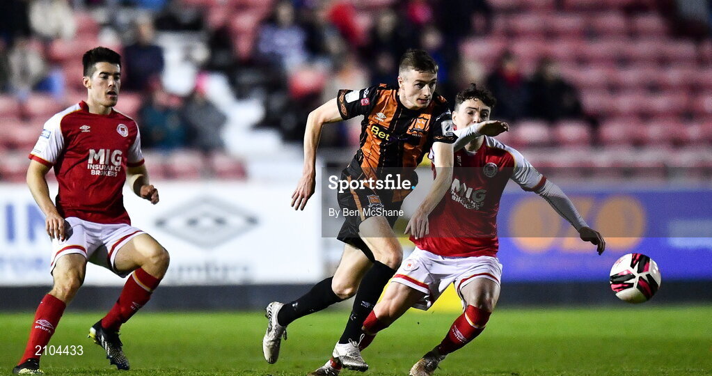 25 October 2021; Daniel Kelly of Dundalk in action against Alfie Lewis of St Patrick's Athletic during the SSE Airtricity League Premier Division match between St Patrick's Athletic and Dundalk at Richmond Park in Dublin. Photo by Ben McShane/Sportsfile