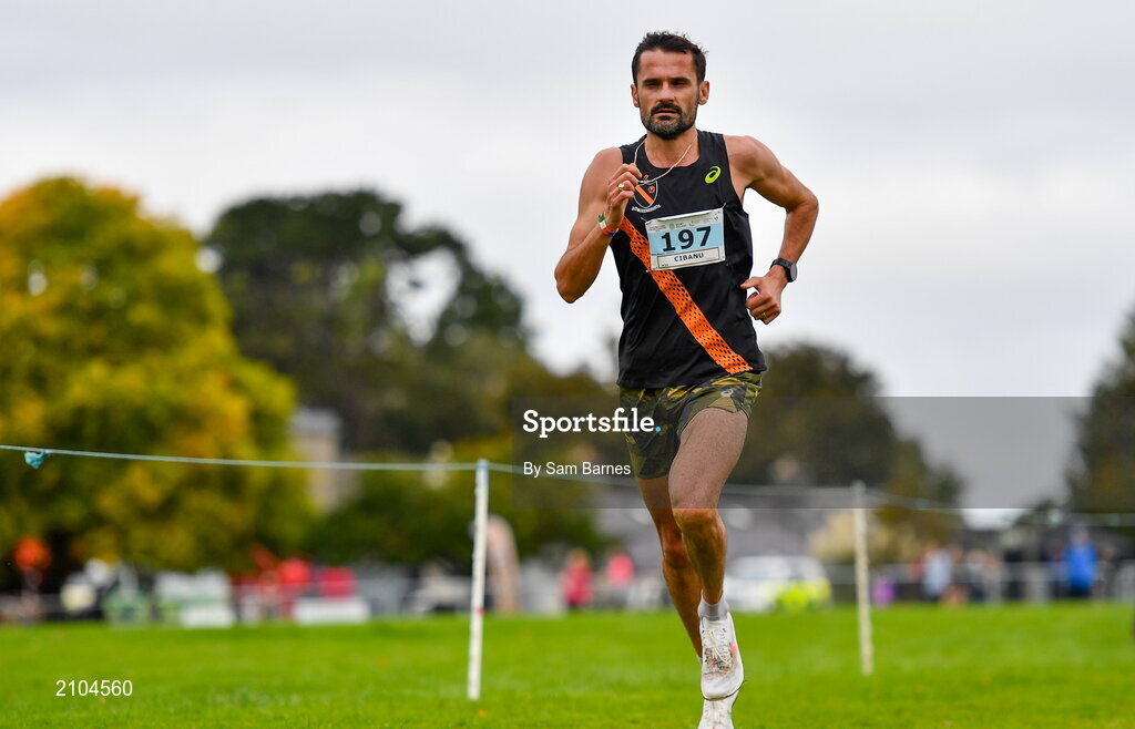 17 October 2021; Sergiu Cibanu of Clonliffe Harriers AC, Dublin, competing in the Master Men's 7500m during the Autumn Open International Cross Country at the Sport Ireland Campus in Dublin. Photo by Sam Barnes/Sportsfile