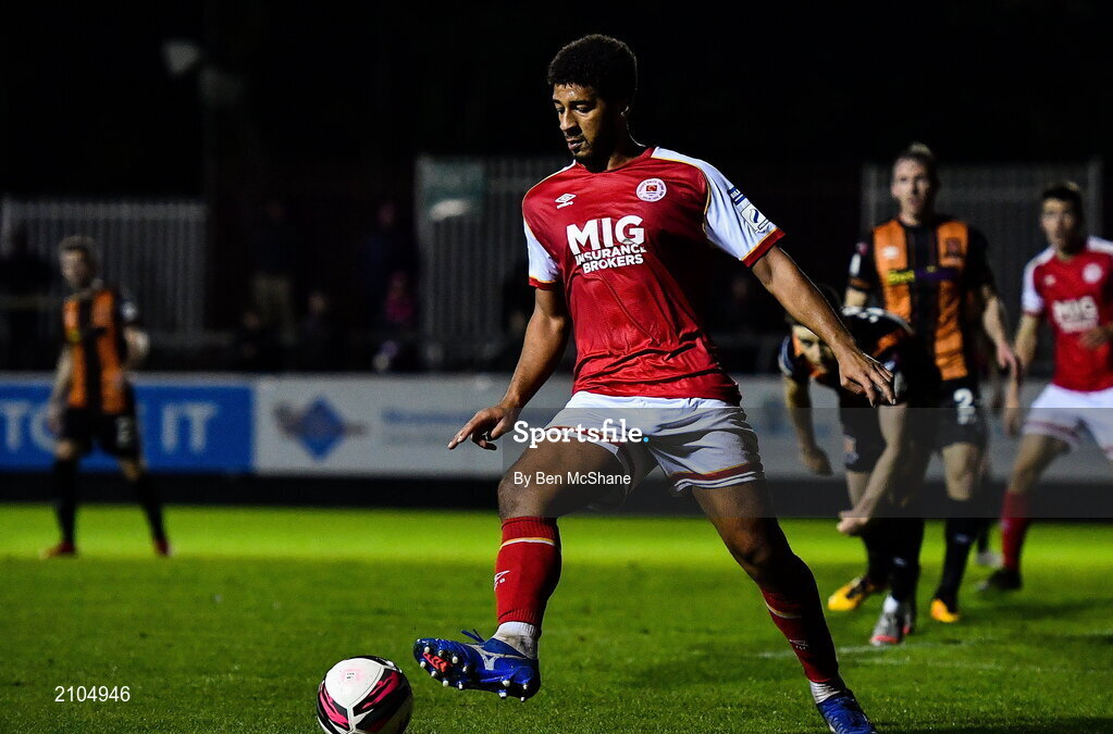 25 October 2021; Kyrian Nwoko of St Patrick's Athletic during the SSE Airtricity League Premier Division match between St Patrick's Athletic and Dundalk at Richmond Park in Dublin. Photo by Ben McShane/Sportsfile
