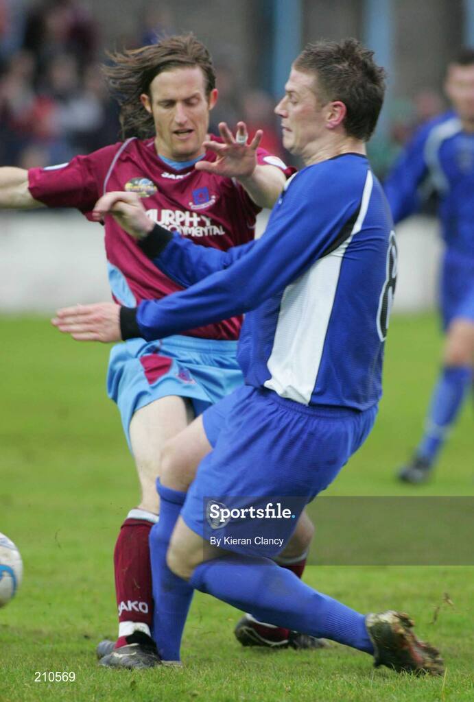 26 May 2006; Ken Kiely, Limerick FC, in action against Simon Webb, Drogheda United. FAI Carlsberg Cup, 2nd Round, Limerick FC v Drogheda United, Hogan Park, Limerick. Picture credit: Kieran Clancy / SPORTSFILE