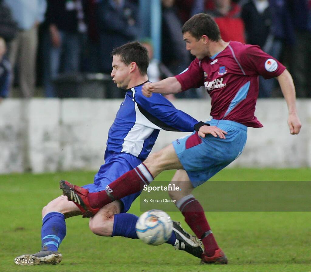 26 May 2006; Conor Molan, Limerick FC, in action against Shane Barrett, Drogheda United. FAI Carlsberg Cup, 2nd Round, Limerick FC v Drogheda United, Hogan Park, Limerick. Picture credit: Kieran Clancy / SPORTSFILE