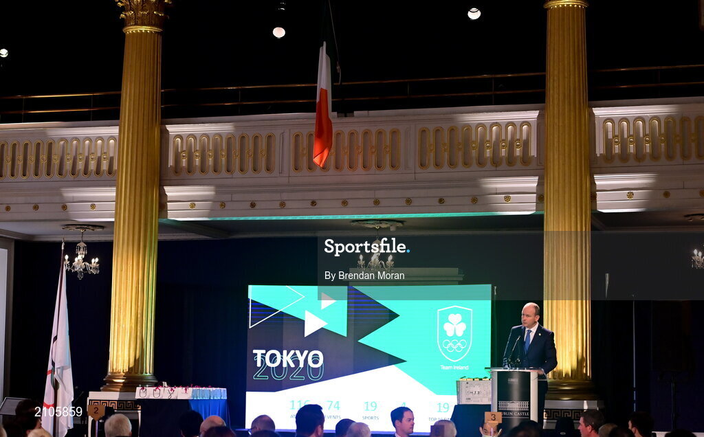 29 October 2021; The athletes and staff who represented Team Ireland at Tokyo 2020 this summer were formally congratulated at the Official Team Ireland Homecoming in Dublin Castle. A record number of Irish athletes competed at the Summer Olympics in Japan with 116 athletes competing across nineteen sports. An Taoiseach Michéal Martin TD, Minister Catherine Martin TD, Minister of State Jack Chambers TD and His Excellency Ambassador Extraordinary and Plenipotentiary of Japan to Ireland, Mr Mitsuru Kitano attended the event to honour the athletes. Speaking at the homecoming is An Taoiseach Micheál Martin TD. Photo by Brendan Moran/Sportsfile