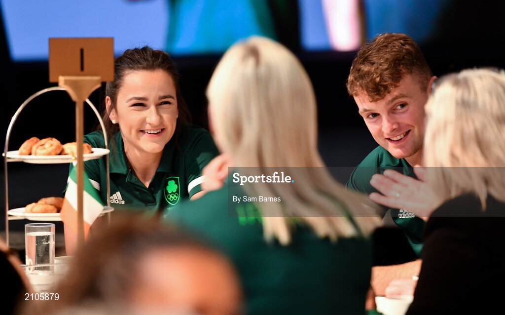29 October 2021; The athletes and staff who represented Team Ireland at Tokyo 2020 this summer were formally congratulated at the Official Team Ireland Homecoming in Dublin Castle. A record number of Irish athletes competed at the Summer Olympics in Japan with 116 athletes competing across nineteen sports. An Taoiseach Michéal Martin TD, Minister Catherine Martin TD, Minister of State Jack Chambers TD and His Excellency Ambassador Extraordinary and Plenipotentiary of Japan to Ireland, Mr Mitsuru Kitano attended the event to honour the athletes. In attendance at the homecoming are Olympians Phil Healy and Marcus Lawler. Photo by Sam Barnes/Sportsfile