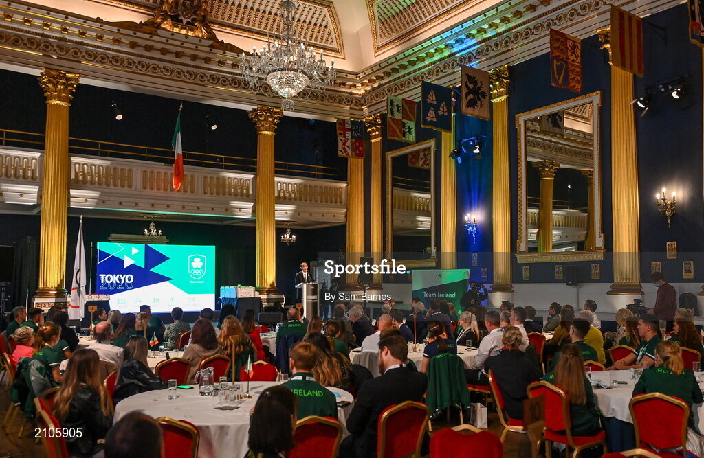29 October 2021; The athletes and staff who represented Team Ireland at Tokyo 2020 this summer were formally congratulated at the Official Team Ireland Homecoming in Dublin Castle. A record number of Irish athletes competed at the Summer Olympics in Japan with 116 athletes competing across nineteen sports. An Taoiseach Michéal Martin TD, Minister Catherine Martin TD, Minister of State Jack Chambers TD and His Excellency Ambassador Extraordinary and Plenipotentiary of Japan to Ireland, Mr Mitsuru Kitano attended the event to honour the athletes. Speaking at the homecoming is His Excellency Ambassador Extraordinary and Plenipotentiary of Japan to Ireland, Mr Mitsuru Kitano. Photo by Sam Barnes/Sportsfile