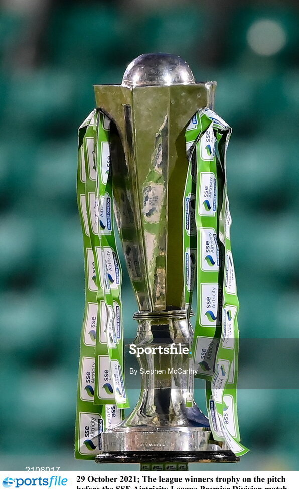 29 October 2021; The league winners trophy on the pitch before the SSE Airtricity League Premier Division match between Shamrock Rovers and Finn Harps at Tallaght Stadium in Dublin. Photo by Stephen McCarthy/Sportsfile