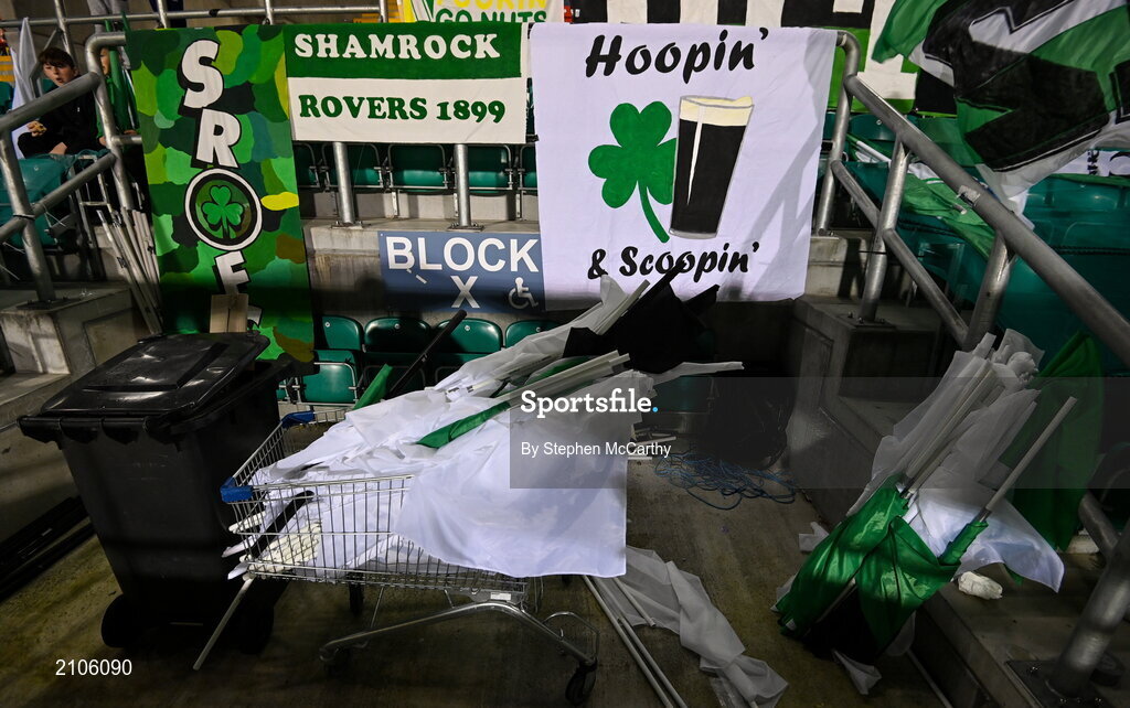 29 October 2021; Shamrock Rovers flags are in the stands before the SSE Airtricity League Premier Division match between Shamrock Rovers and Finn Harps at Tallaght Stadium in Dublin. Photo by Stephen McCarthy/Sportsfile