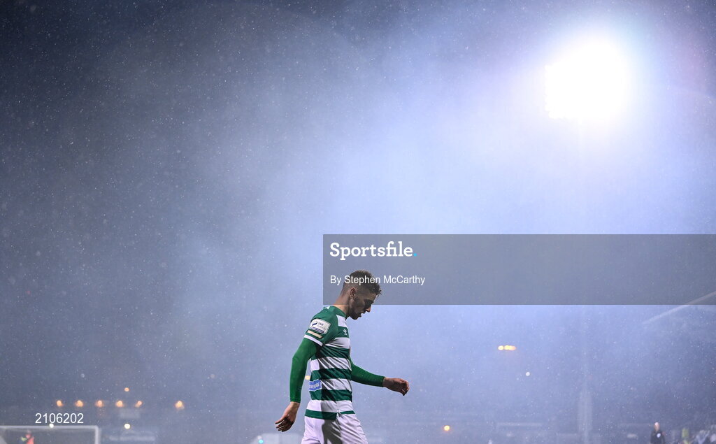 29 October 2021; Dylan Watts of Shamrock Rovers during the SSE Airtricity League Premier Division match between Shamrock Rovers and Finn Harps at Tallaght Stadium in Dublin. Photo by Stephen McCarthy/Sportsfile