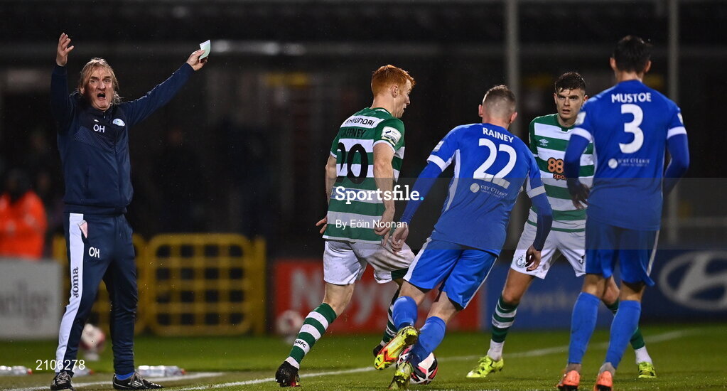 29 October 2021; Finn Harps manager Ollie Horgan reacts during the SSE Airtricity League Premier Division match between Shamrock Rovers and Finn Harps at Tallaght Stadium in Dublin. Photo by Eóin Noonan/Sportsfile