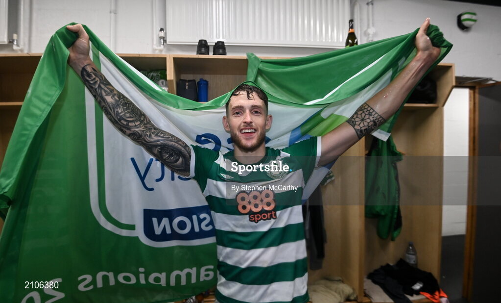 29 October 2021; Lee Grace of Shamrock Rovers celebrates after the SSE Airtricity League Premier Division match between Shamrock Rovers and Finn Harps at Tallaght Stadium in Dublin. Photo by Stephen McCarthy/Sportsfile