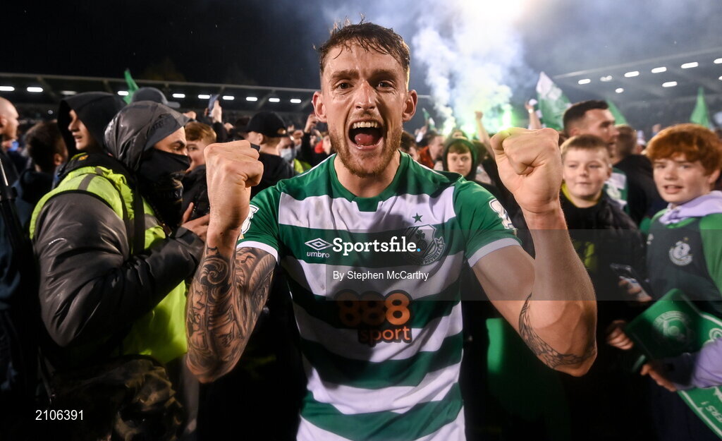 29 October 2021; Lee Grace of Shamrock Rovers celebrates after the SSE Airtricity League Premier Division match between Shamrock Rovers and Finn Harps at Tallaght Stadium in Dublin. Photo by Stephen McCarthy/Sportsfile