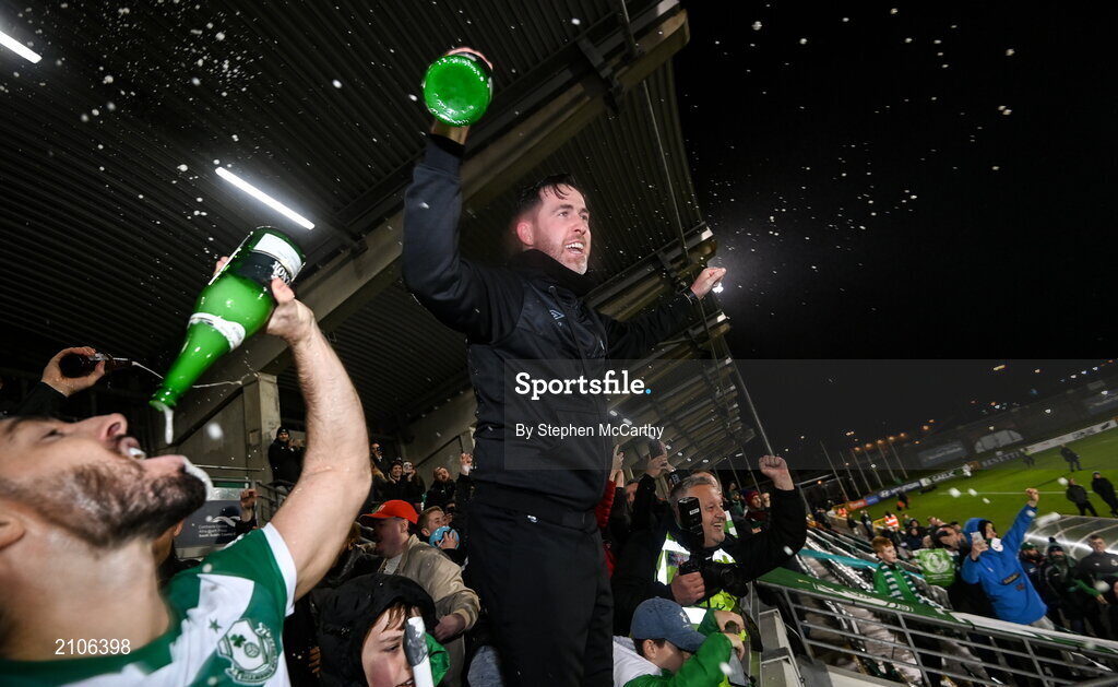 29 October 2021; Shamrock Rovers manager Stephen Bradley celebrates after the SSE Airtricity League Premier Division match between Shamrock Rovers and Finn Harps at Tallaght Stadium in Dublin. Photo by Stephen McCarthy/Sportsfile