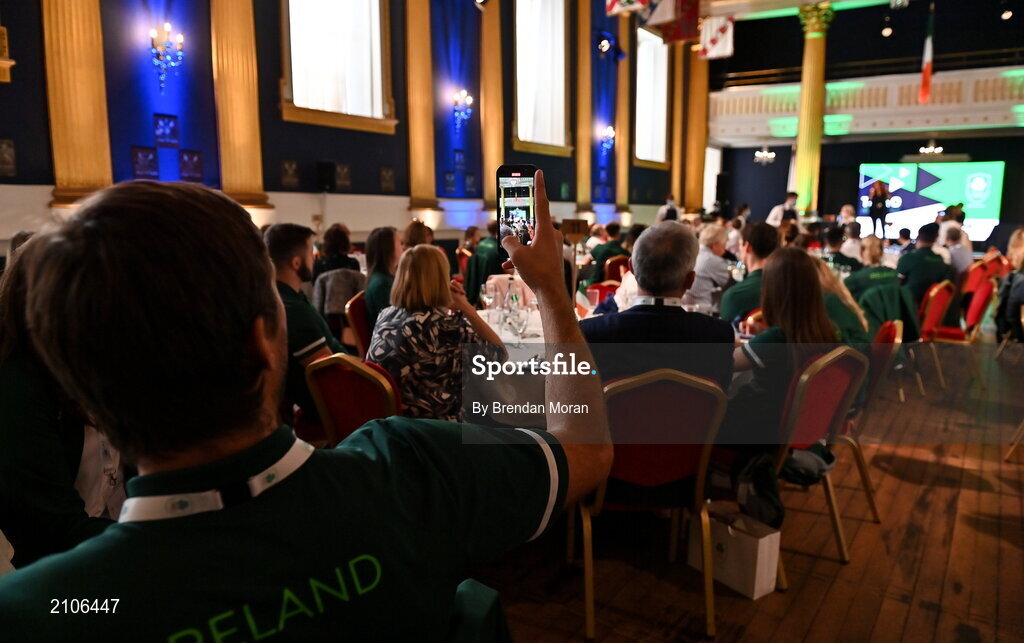 29 October 2021; The athletes and staff who represented Team Ireland at Tokyo 2020 this summer were formally congratulated at the Official Team Ireland Homecoming in Dublin Castle. A record number of Irish athletes competed at the Summer Olympics in Japan with 116 athletes competing across nineteen sports. An Taoiseach Michéal Martin TD, Minister Catherine Martin TD, Minister of State Jack Chambers TD and His Excellency Ambassador Extraordinary and Plenipotentiary of Japan to Ireland, Mr Mitsuru Kitano attended the event to honour the athletes. Performing at the homecoming is singer Roisín O. Photo by Brendan Moran/Sportsfile