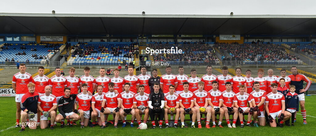 31 October 2021; The Padraig Pearses panel before the Roscommon County Senior Club Football Championship Final match between Clann na nGael and Padraig Pearses at Dr Hyde Park in Roscommon. Photo by Seb Daly/Sportsfile