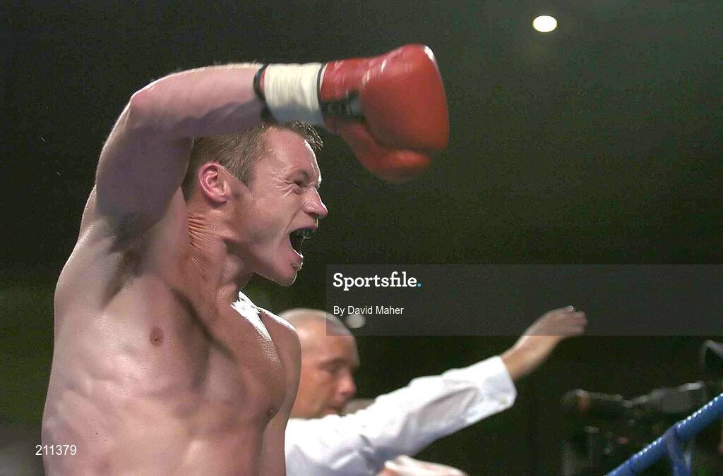 3 June 2006; Oisin Fagan celebrates victory in round seven. Vacant Irish Light Welterweight Title, Oisin Fagan.v.Jeff Thomas, National Stadium, South Circular Road, Dublin. Picture credit: David Maher / SPORTSFILE