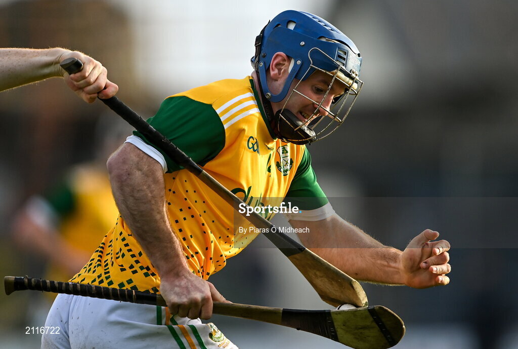 6 November 2021; Jamie Ryan of Craughwell is dispossessed by Ian O'Brien of Clarinbridge during the Galway County Senior Club Hurling Championship semi-final match between Craughwell and Clarinbridge at Kenny Park in Athenry, Galway. Photo by Piaras Ó Mídheach/Sportsfile
