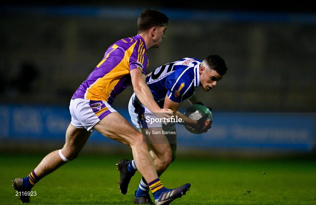 6 November 2021; Ross McGarry of Ballyboden St Enda's in action against Andrew McGowan of Kilmacud Crokes during the Go Ahead Dublin County Senior Club Football Championship Semi-Final match between Kilmacud Crokes and Ballyboden St Enda's at Parnell Park in Dublin. Photo by Sam Barnes/Sportsfile
