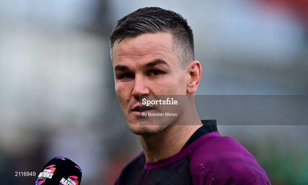 6 November 2021; An emotional Ireland captain Jonathan Sexton is interviewed after the Autumn Nations Series match between Ireland and Japan at Aviva Stadium in Dublin. Photo by Brendan Moran/Sportsfile
