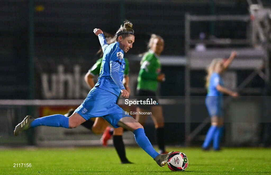 6 November 2021; Jess Gleeson of DLR Waves during the SSE Airtricity Women's National League match between Peamount United and DLR Waves at PLR Park in Greenogue, Dublin. Photo by Eóin Noonan/Sportsfile