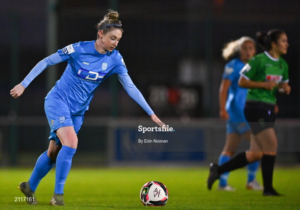 6 November 2021; Jess Gleeson of DLR Waves during the SSE Airtricity Women's National League match between Peamount United and DLR Waves at PLR Park in Greenogue, Dublin. Photo by Eóin Noonan/Sportsfile