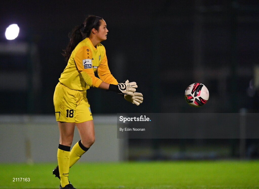 6 November 2021; Eve Badana of DLR Waves during the SSE Airtricity Women's National League match between Peamount United and DLR Waves at PLR Park in Greenogue, Dublin. Photo by Eóin Noonan/Sportsfile
